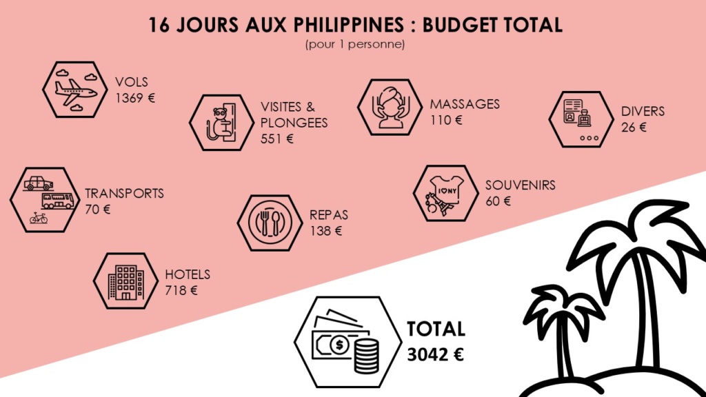 Voici en détail mes dépenses pour vous donner une idée des prix / de budget à prévoir pour les Philippines. Prix 2024